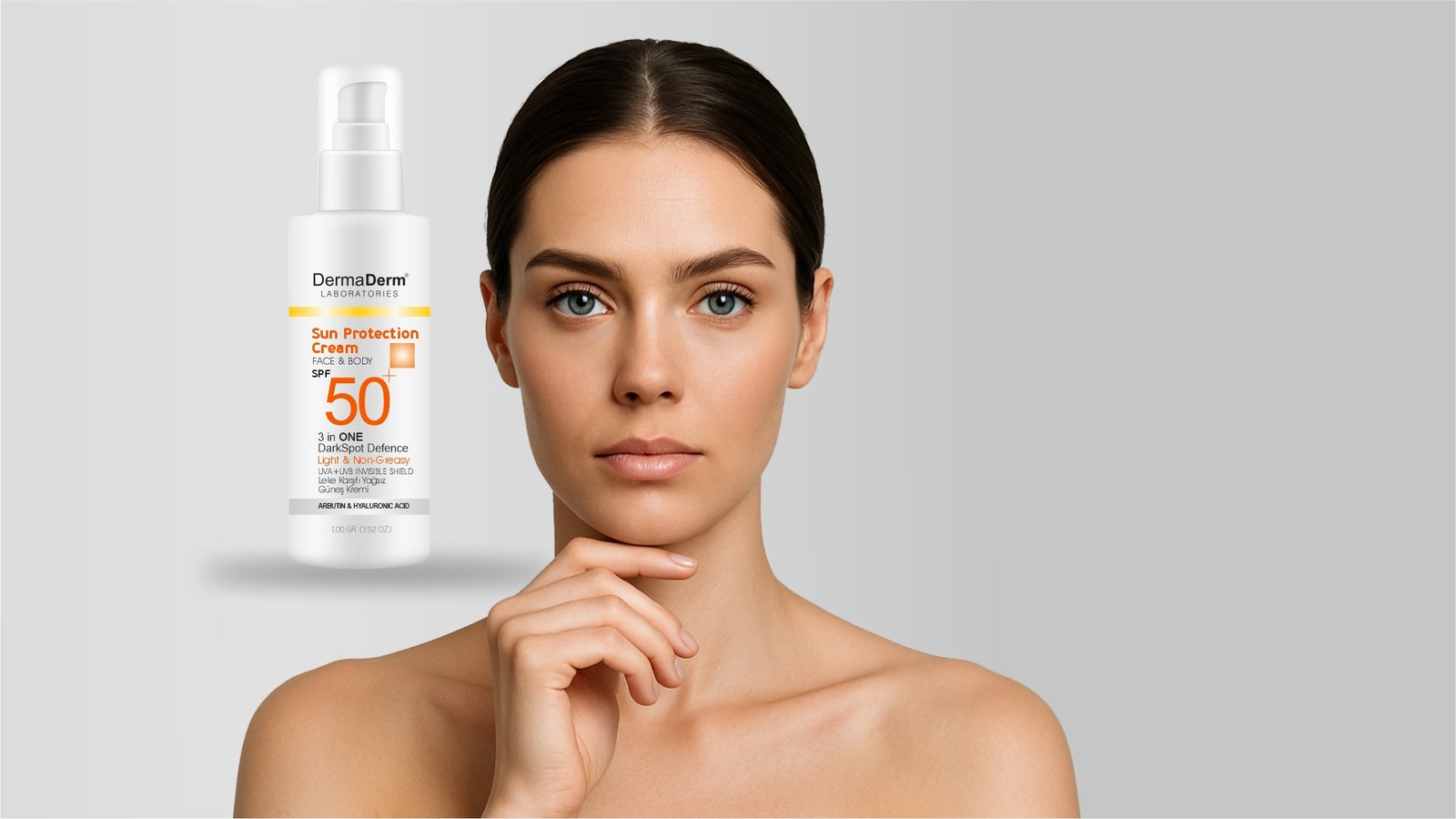 Dermaderm Aydınlatıcı Cilt Tonu Eşitleyici SPF50+ Güneş Koruma Kremi, cilt tonunu dengelerken güçlü güneş koruması sağlar. Hafif yapısı sayesinde ciltte beyaz kalıntı bırakmaz. Günlük kullanım ve makyaj altı için uygundur. Parlak, sağlıklı bir görünüm sunar.