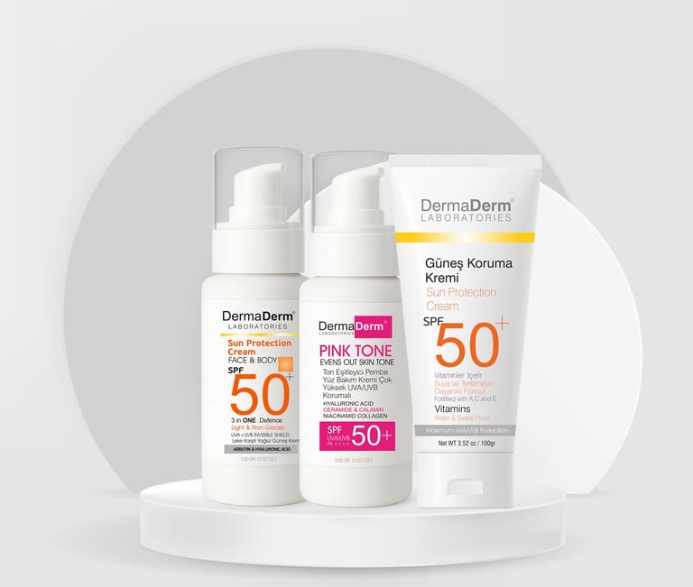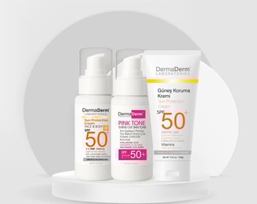 Cilt bakım rutininin en önemli adımlarından biri, cildi güneşten korumak ve günlük bakım ihtiyacını doğru ürünlerle desteklemektir. Dermaderm olarak geliştirdiğimiz SPF50+ güneş kremleri, ton eşitleyici renkli kremler ve hafif dokulu nemlendirici formüller, her cilt tipine uygun seçenekler sunar. Yoğun güneş ışınlarına karşı günlük bakım desteği sağlayan güneş kremleri, cildin daha pürüzsüz ve aydınlık görünmesine yardımcı olur. Hafif yapıları sayesinde yağlanma yapmadan kolayca emilir ve makyaj altı kullanıma da uygundur.